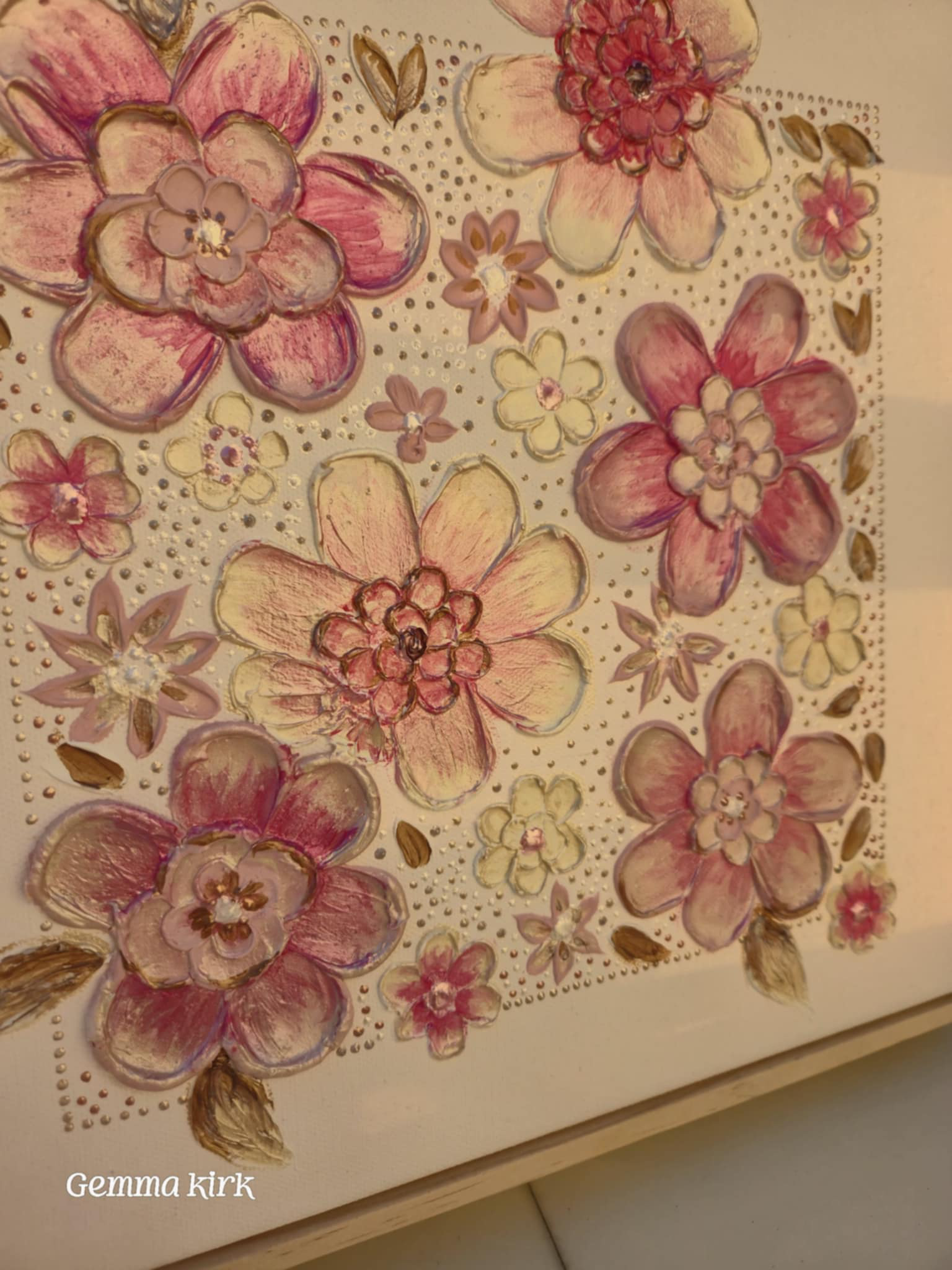 Experience the elegance of stunning modelled flowers crafted with rich modelling paste and enhanced by shimmering metallic paints. Each piece showcases exquisite detail, bringing a touch of refined artistry to your space. Perfect for adding a sophisticated, handcrafted accent that captivates and inspires.